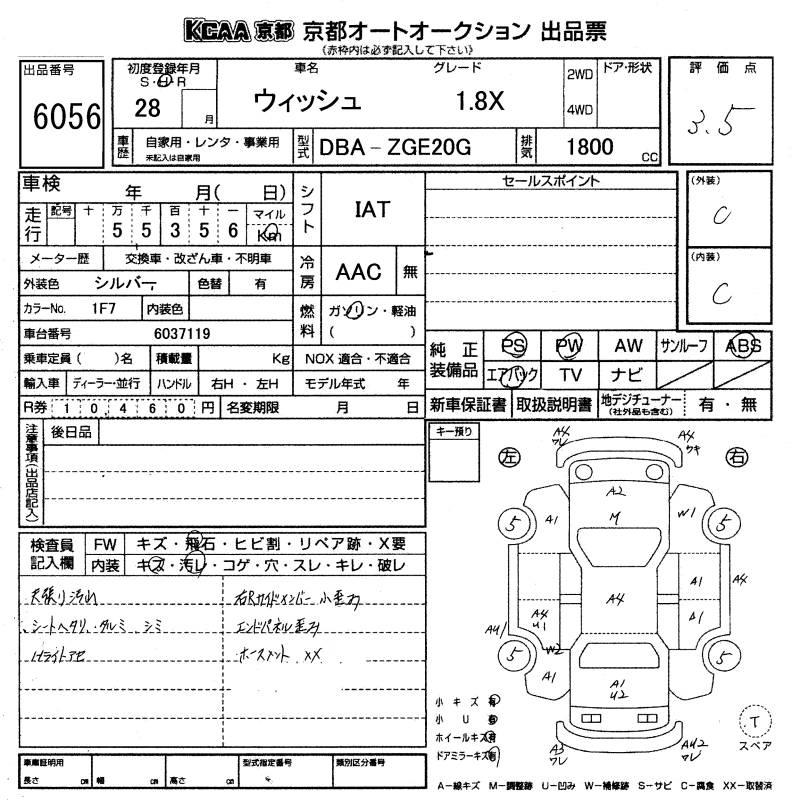 TOYOTA WISH 2016 г., лот № 6056