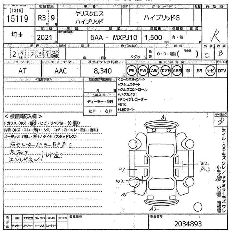 TOYOTA YARIS CROSS 2021 г., лот № 15119
