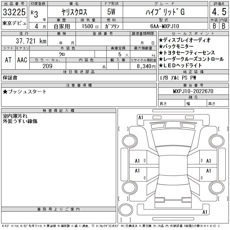 TOYOTA YARIS CROSS 2021 г., лот № 33225