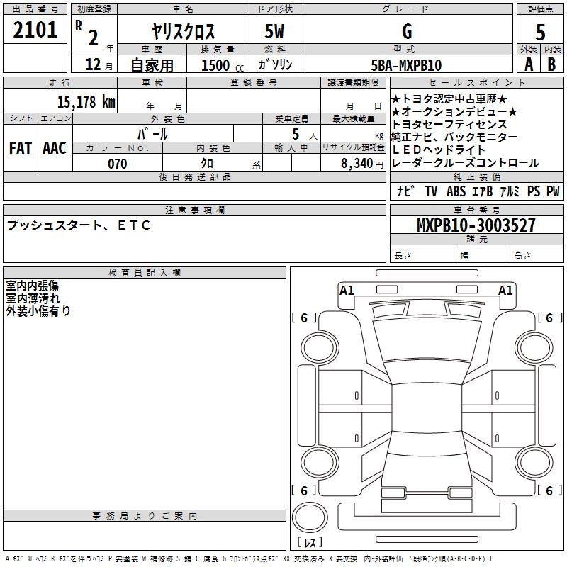 | G | 5BA-MXPB10 | M15A-FKS | FF | CVT | 1490cc | 120ps(88kW)/6600rpm | AИ-92 | 2 020 000 | |