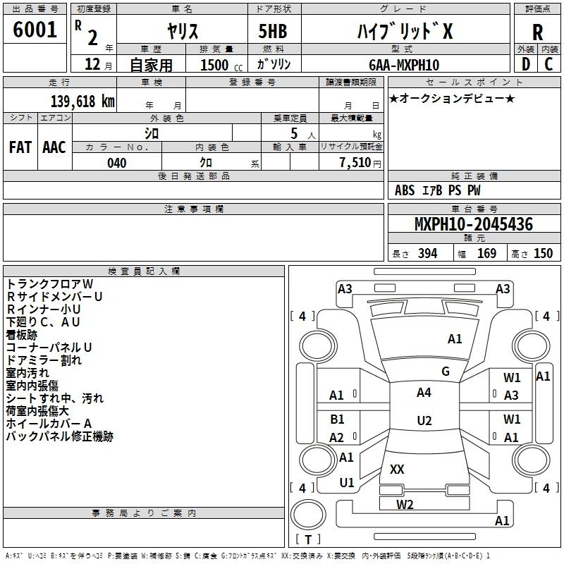 HYBRID G 6AA-MXPH10 M15A-FXE FF CVT 1490cc 91ps(67kW)/5500rpm AИ-92 2 130 000