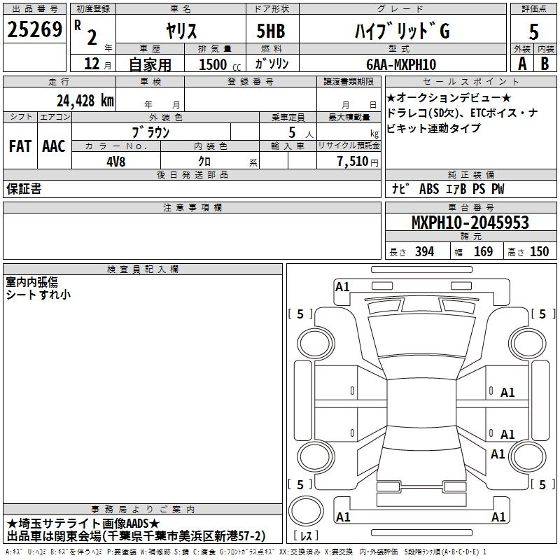 | HYBRID G | 6AA-MXPH10 | M15A-FXE | FF | CVT | 1490cc | 91ps(67kW)/5500rpm | AИ-92 | 2 130 000 | |