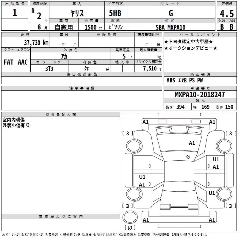 G 5BA-MXPA10 M15A-FKS FF 6MT 1490cc 120ps(88kW)/6600rpm AИ-92 1 701 000