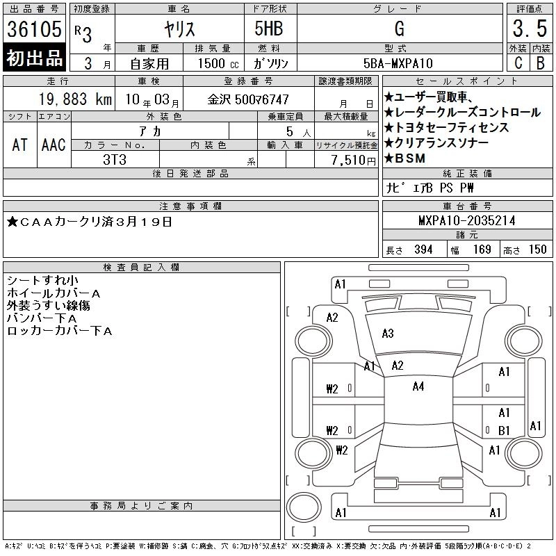 Статус продан Лот 36105 Аукцион CAA Chubu Дата аукциона 25.03.2026