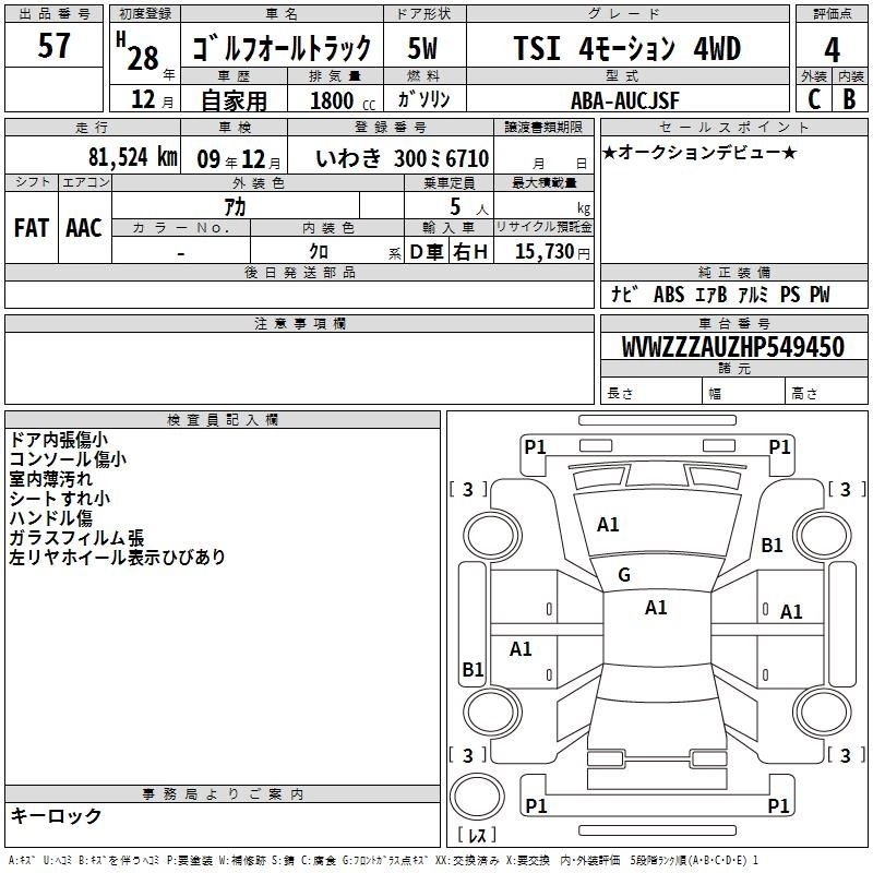 | TSI 4MOTION UPGRADE PACKAGE | ABA-AUCJSF | CJS | Full-time 4WD | 6AT | 1798cc | 180ps(132kW)/4500~6200rpm | AИ-95 | 3 670 000 | |
