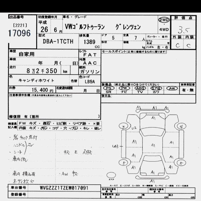 | TSI COMFORTLINE | DBA-1TCTH | CTH | FF | 7AT | 1389cc | 140ps(103kW)/5600rpm | AИ-95 | 3 106 000 |