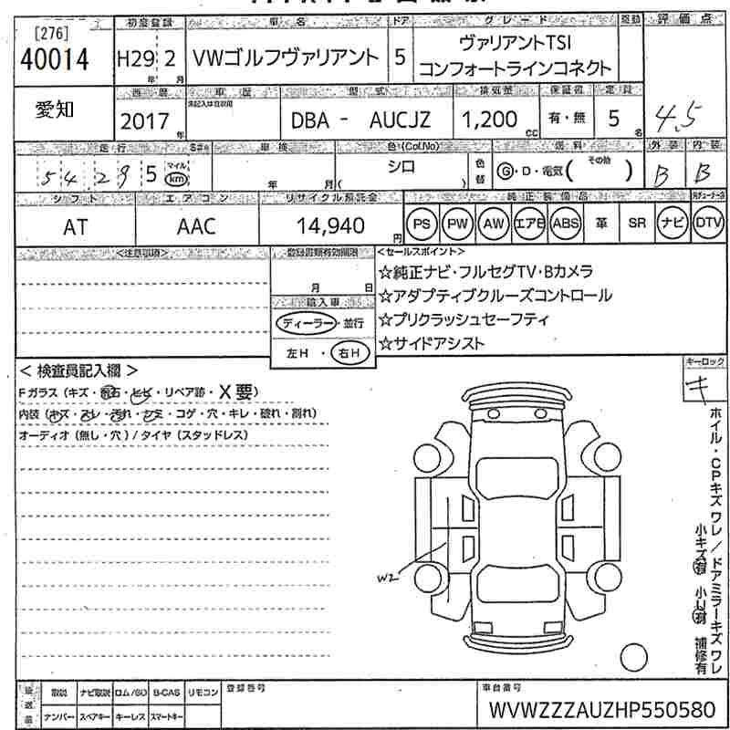 VOLKSWAGEN GOLF VARIANT 2017 г., лот № 40014