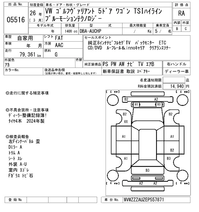 | TSI HIGHLINE BLUEMOTION TECHNOLOGY | DBA-AUCHP | CHP | FF | 7AT | 1394cc | 140ps(103kW)/4500~6000rpm | AИ-95 | 3 350 000 | |