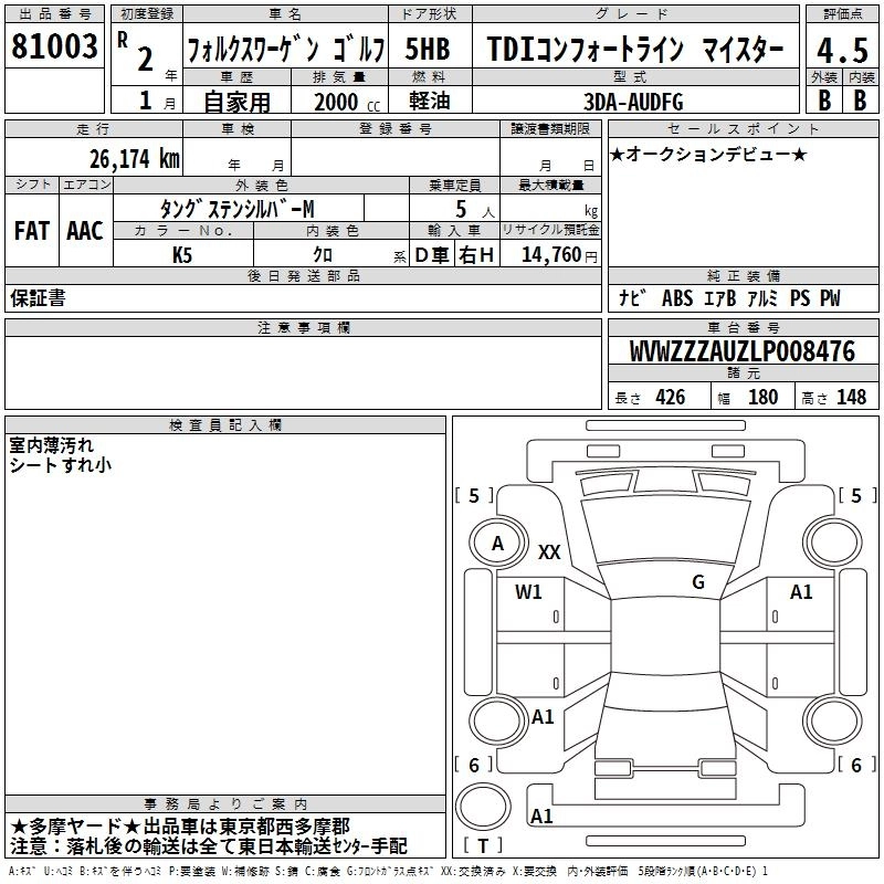| TDI COMFORTLINE MEISTER | 3DA-AUDFG | DFG | FF | 7AT | 1968cc | 150ps(110kW)/3500~4000rpm | Дизельное топливо | 3 569 000 | |