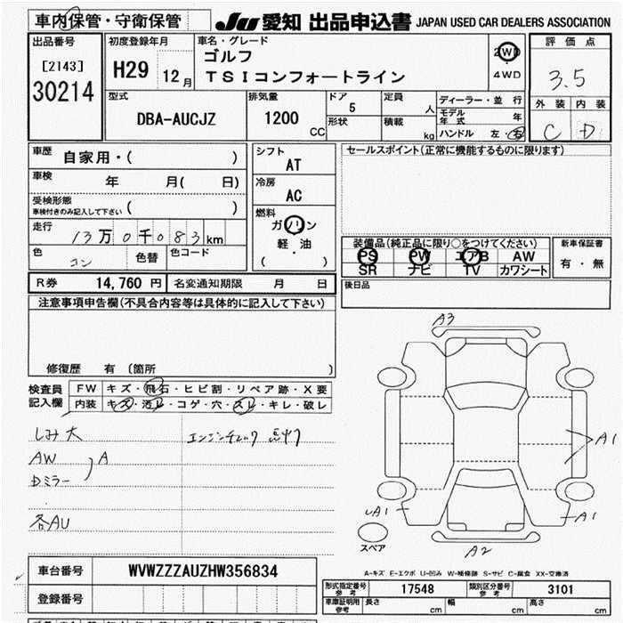 | TSI HIGHLINE | DBA-AUCPT | CPT | FF | 7AT | 1394cc | 140ps(103kW)/4500~6000rpm | AИ-95 | 3 259 000 | |