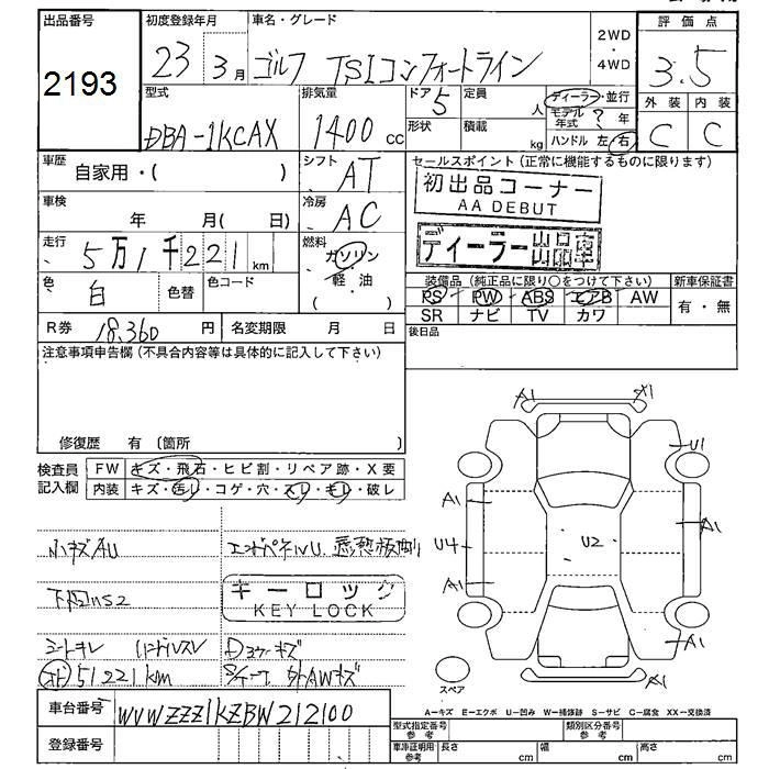 | TSI HIGHLINE | DBA-1KCAV | CAV | FF | 7AT | 1389cc | 160ps(118kW)/5800rpm | AИ-95 | 3 290 000 | |