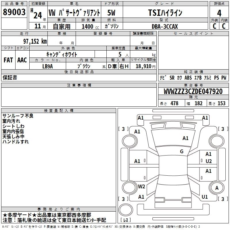 VOLKSWAGEN PASSAT VARIANT 2012 г., лот № 89003
