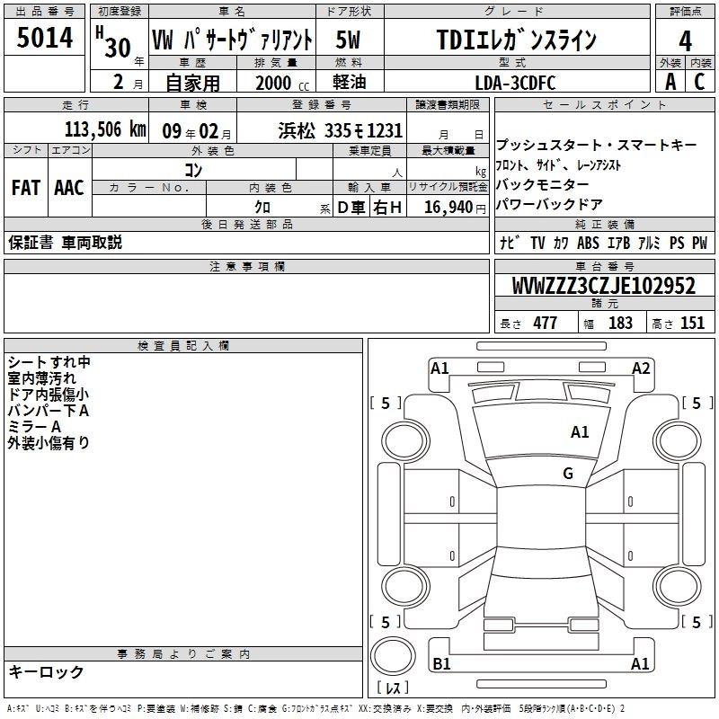 | TDI ELEGANCELINE | LDA-3CDFC | DFC | FF | 6AT | 1968cc | 190ps(140kW)/3500~4000rpm | Дизельное топливо | 4 429 000 |