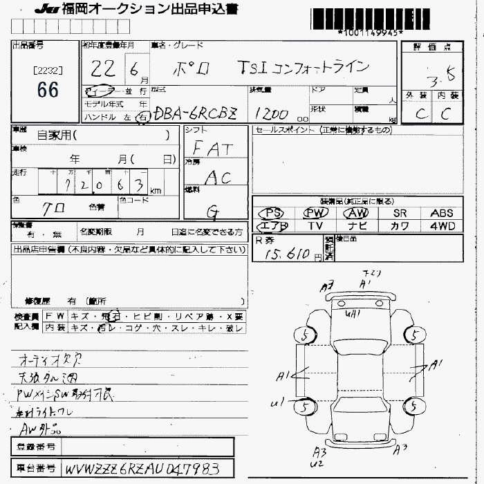 | CROSS POLO | DBA-6RCBZW | CBZ | FF | 7AT | 1197cc | 105ps(77kW)/5000rpm | AИ-95 | 2 600 000 | |
