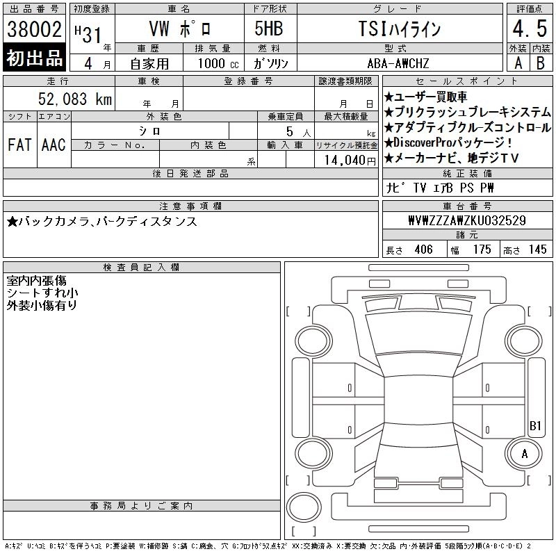 | TSI HIGHLINE | ABA-AWCHZ | CHZ | FF | 7AT | 999cc | 95ps(70kW)/5000~5500rpm | AИ-95 | 2 679 000 | |