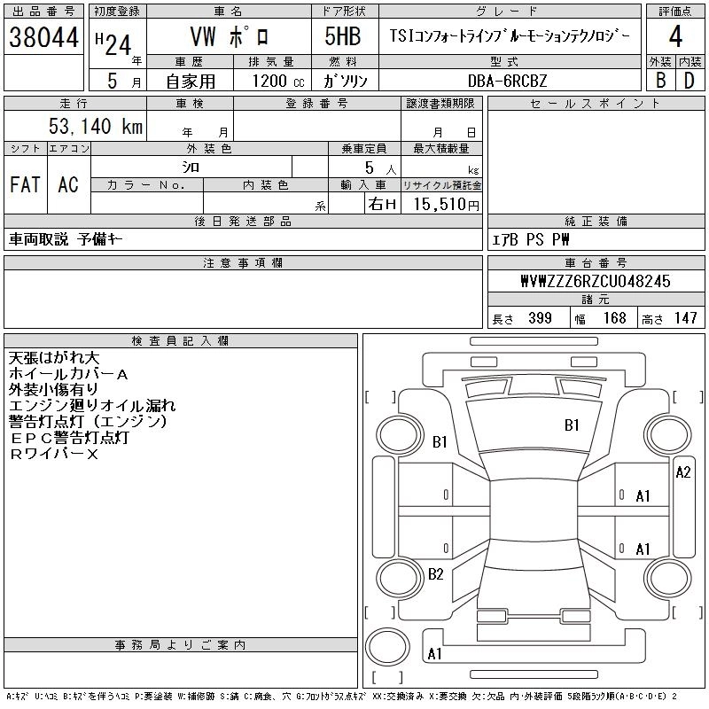 VOLKSWAGEN POLO 2012 г., лот № 38044