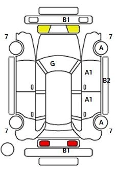 B1Маленькая вмятина с царапиной (размером с большой палец)