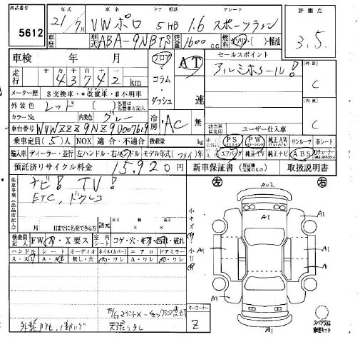 | CROSS POLO | ABA-9NBTS | BTS | FF | 6AT | 1597cc | 105ps(77kW)/5600rpm | AИ-95 | 2 450 000 | |