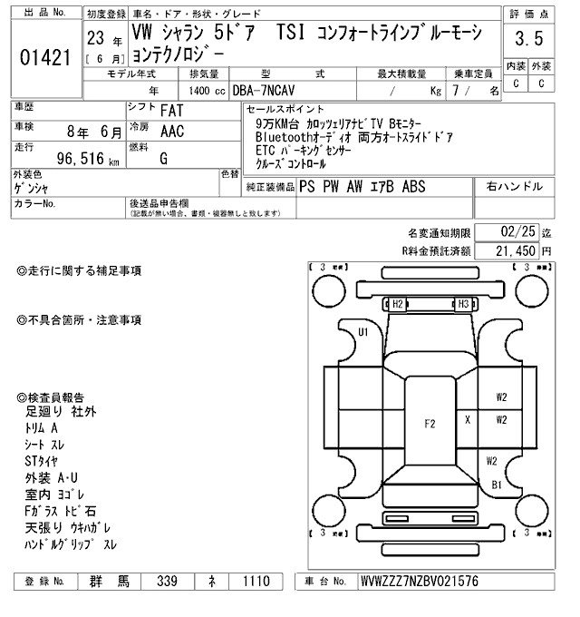 | TSI HIGHLINE | DBA-7NCAV | CAV | FF | 6AT | 1389cc | 150ps(110kW)/5800rpm | AИ-95 | 4 380 000 | |