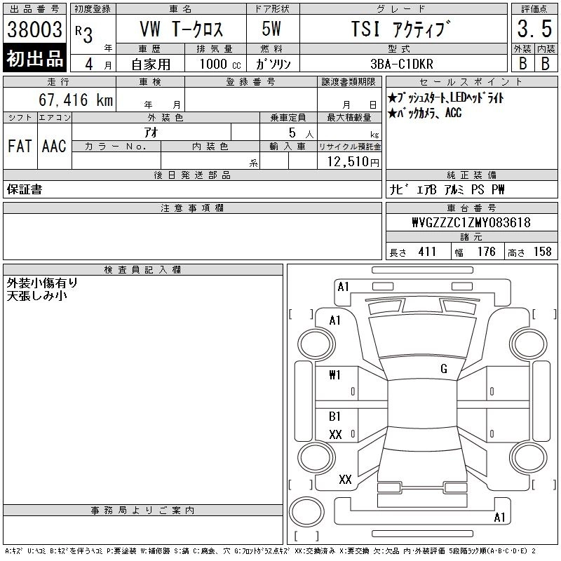 Статус выставлен на аукцион Лот 38003 Аукцион CAA Chubu Дата аукциона 18.03.2026