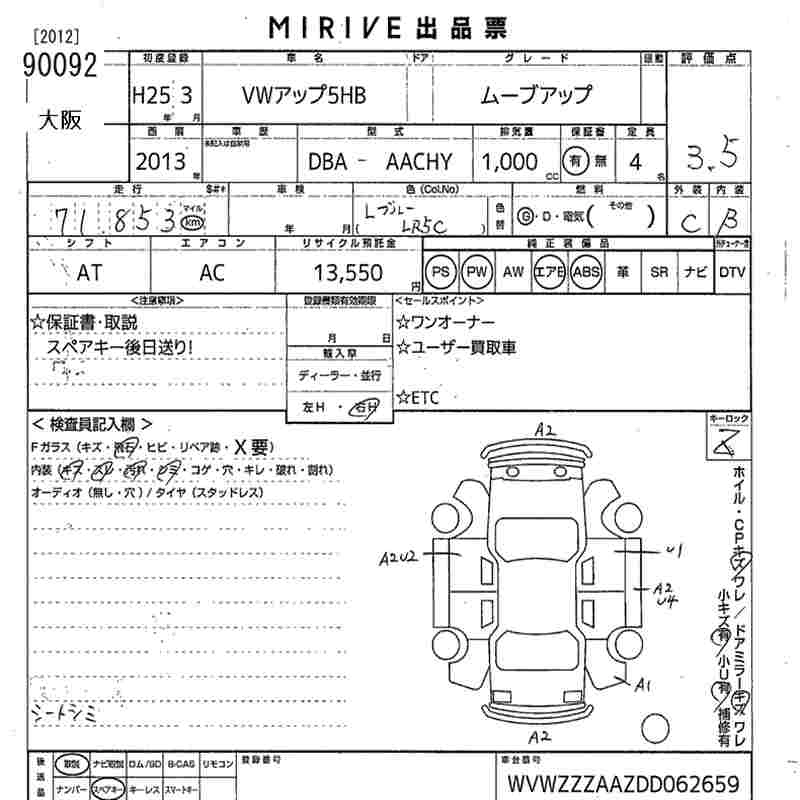 VOLKSWAGEN UP! 2013 г., лот № 90092