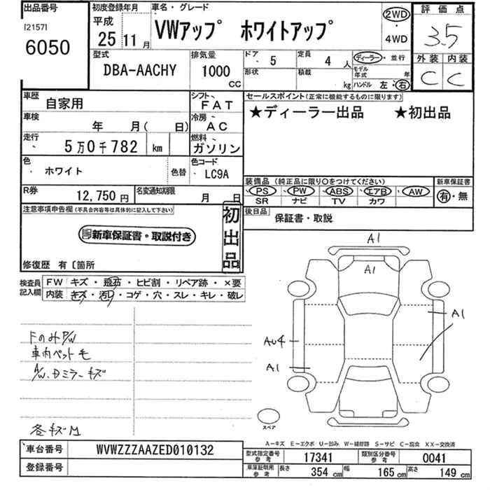 VOLKSWAGEN UP! 2013 г., лот № 6050