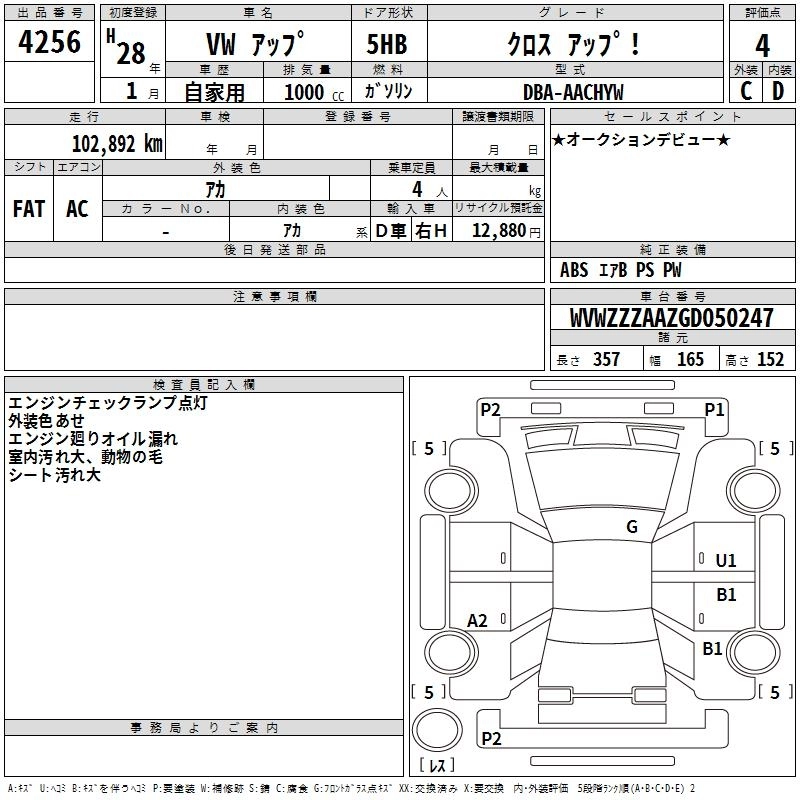 VOLKSWAGEN UP! 2016 г., лот № 4256