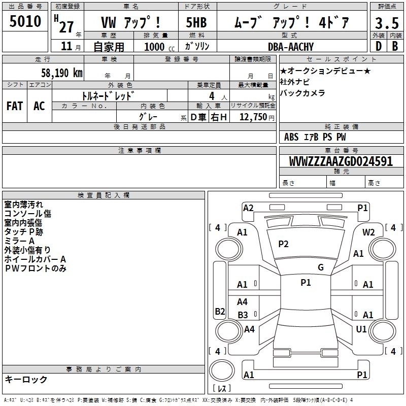 VOLKSWAGEN UP! 2015 г., лот № 5010