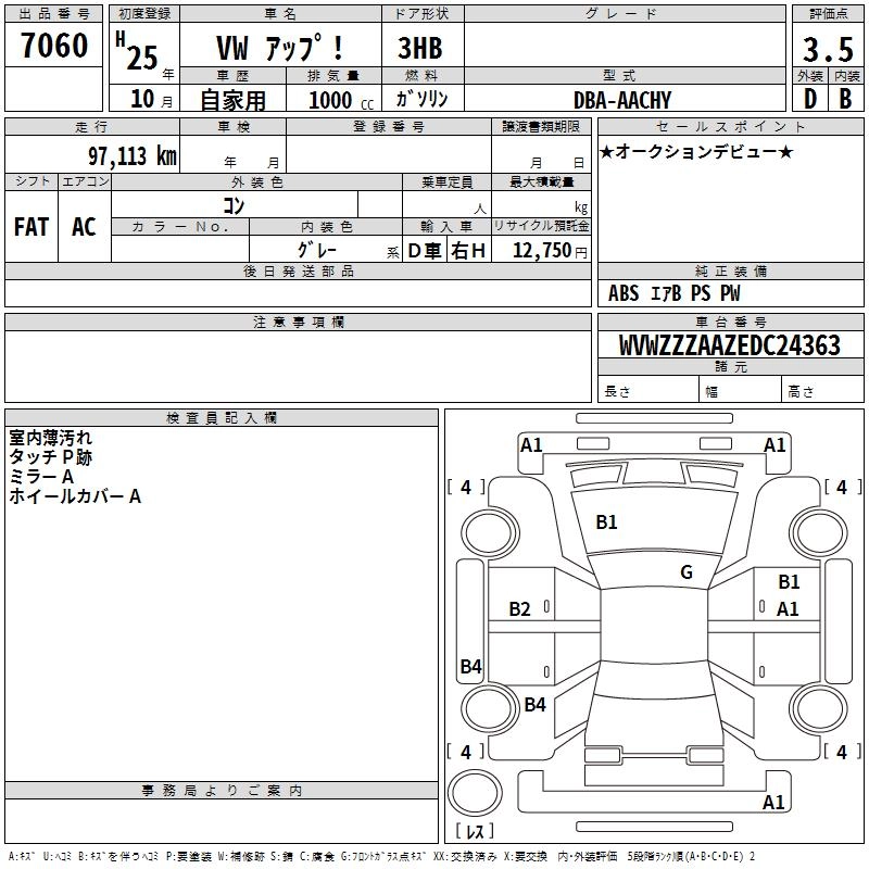 VOLKSWAGEN UP! 2013 г., лот № 7060