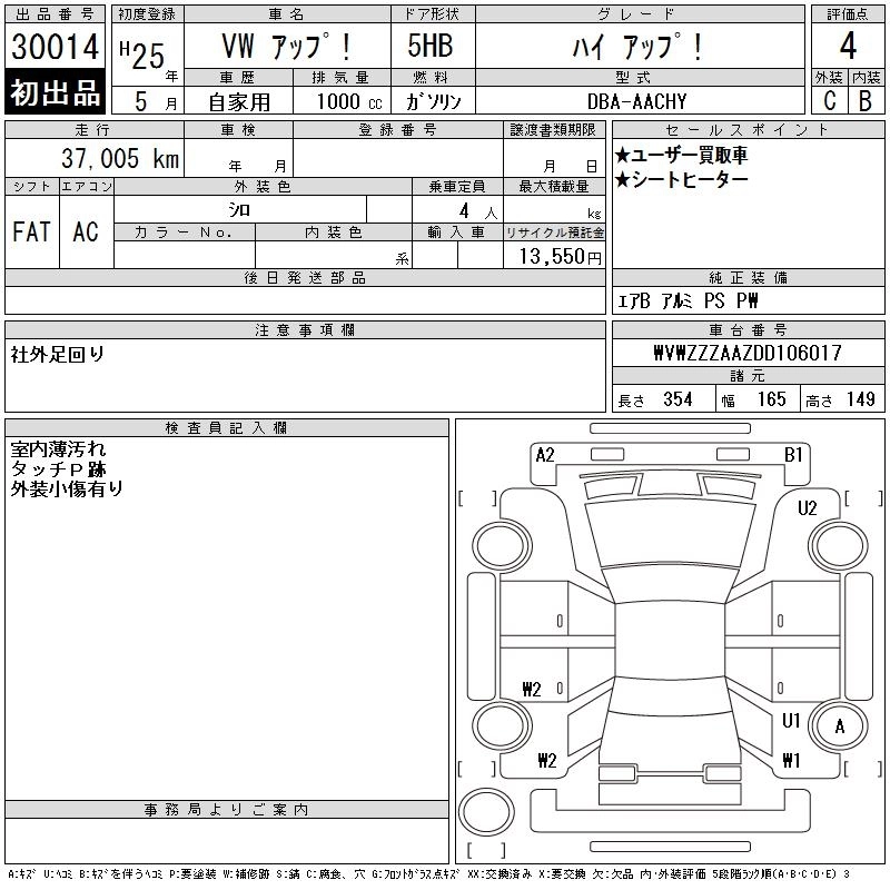 VOLKSWAGEN UP! 2013 г., лот № 30014