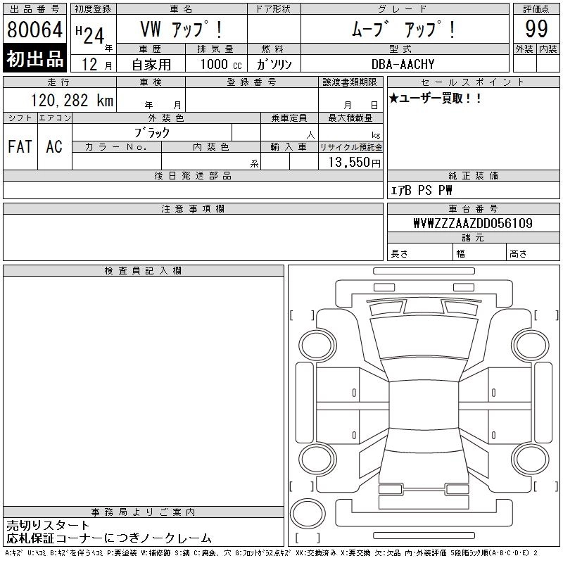 VOLKSWAGEN UP! 2012 г., лот № 80064