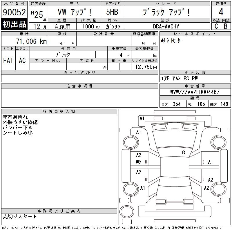 VOLKSWAGEN UP! 2013 г., лот № 90052