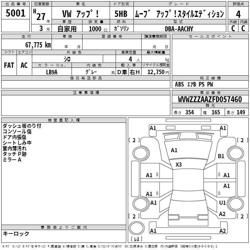 VOLKSWAGEN UP! 2015 г., лот № 5001
