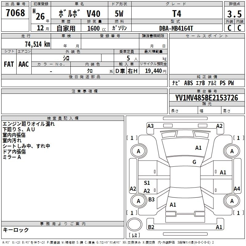 | CROSS COUNTRY T4 NORDIC | DBA-MB4164T | B4164T | FF | 6AT | 1595cc | 180ps(132kW)/5700rpm | AИ-95 | 3 800 000 | |