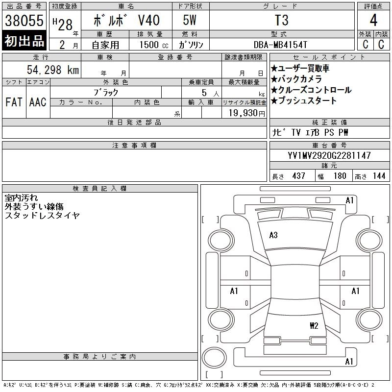| T3 INSCRIPTION | DBA-MB4154T | B4154T | FF | 6AT | 1497cc | 152ps(112kW)/5000rpm | AИ-95 | 4 140 000 | |