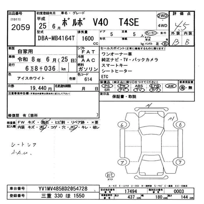 VOLVO V40 2013 г., лот № 2059