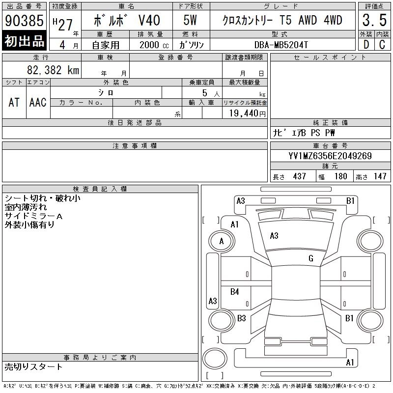 | CROSS COUNTRY D4 SE | LDA-MD4204T | D4204T | FF | 8AT | 1968cc | 190ps(140kW)/4250rpm | Дизельное топливо | 4 140 000 | |