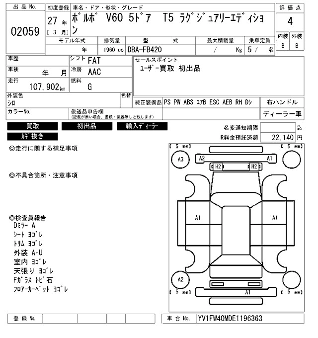 | T4 R-DESIGN | DBA-FB420 | B420 | FF | 6AT | 1968cc | 190ps(140kW)/4700rpm | AИ-95 | 5 240 000 | |