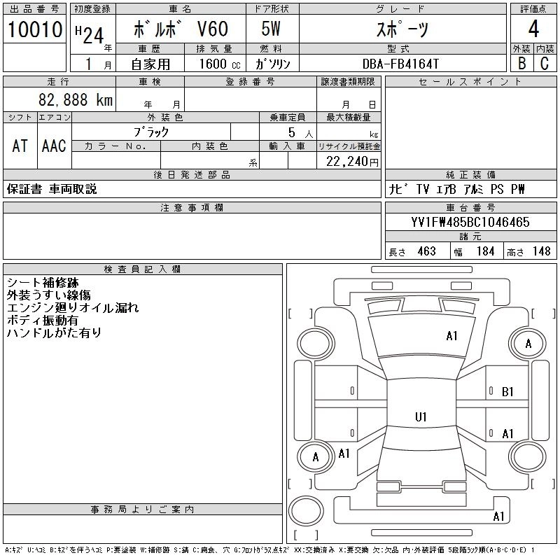 VOLVO V60 2012 г., лот № 10010