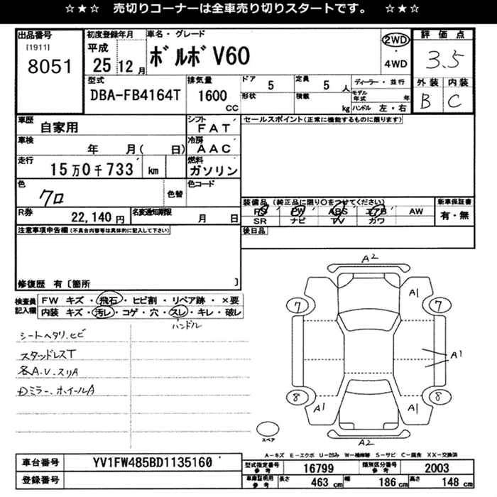 | T6 AWD R-DESIGN | CBA-FB6304T | B6304T | Full-time 4WD | 6AT | 2953cc | 304ps(224kW)/5600rpm | AИ-95 | 6 390 000 | |