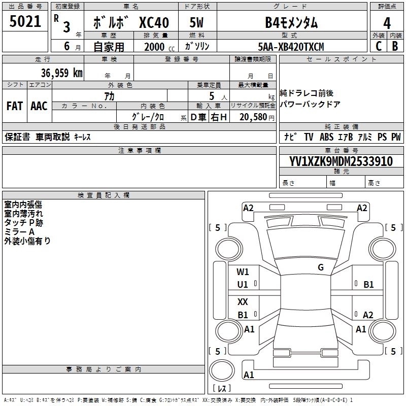 VOLVO XC40 2021 г., лот № 5021