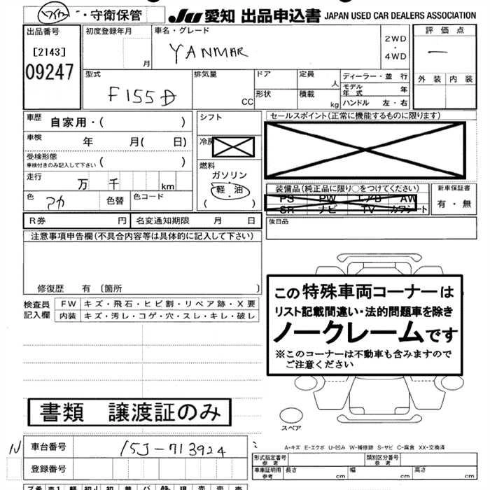 Статус выставлен на аукцион Лот 9247 Аукцион JU Aichi Дата аукциона 29.01.2026