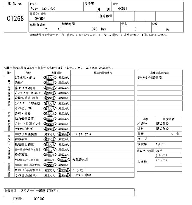 Статус выставлен на аукцион Лот 1268 Аукцион ARAI Kenki Дата аукциона 17.03.2026