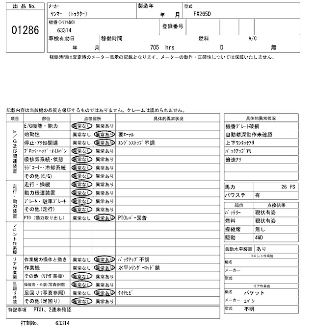 Статус выставлен на аукцион Лот 1286 Аукцион ARAI Kenki Дата аукциона 17.03.2026