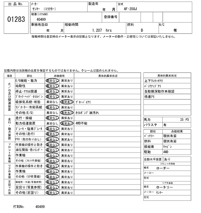 Статус выставлен на аукцион Лот 1283 Аукцион ARAI Kenki Дата аукциона 17.03.2026