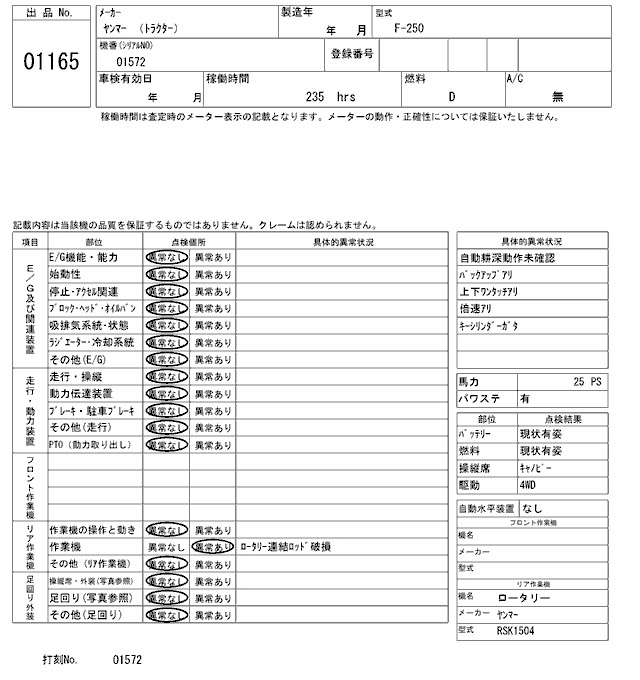 Статус выставлен на аукцион Лот 1165 Аукцион ARAI Kenki Дата аукциона 17.03.2026