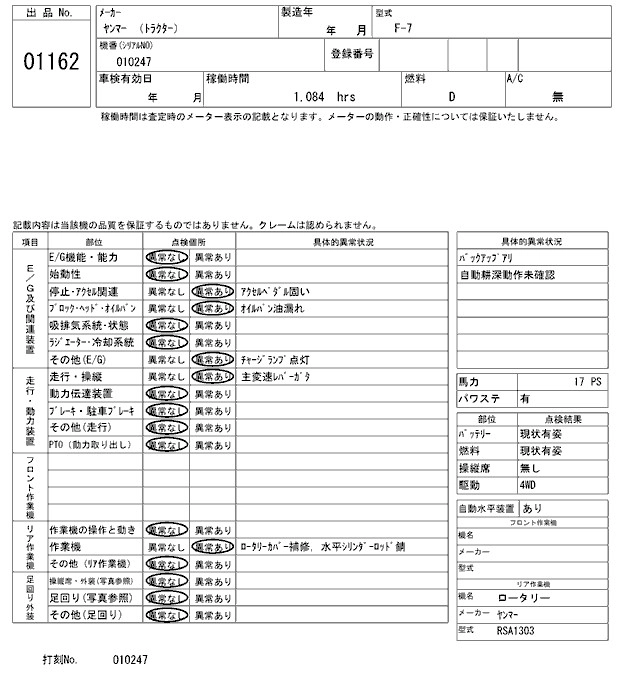 Статус выставлен на аукцион Лот 1162 Аукцион ARAI Kenki Дата аукциона 17.03.2026