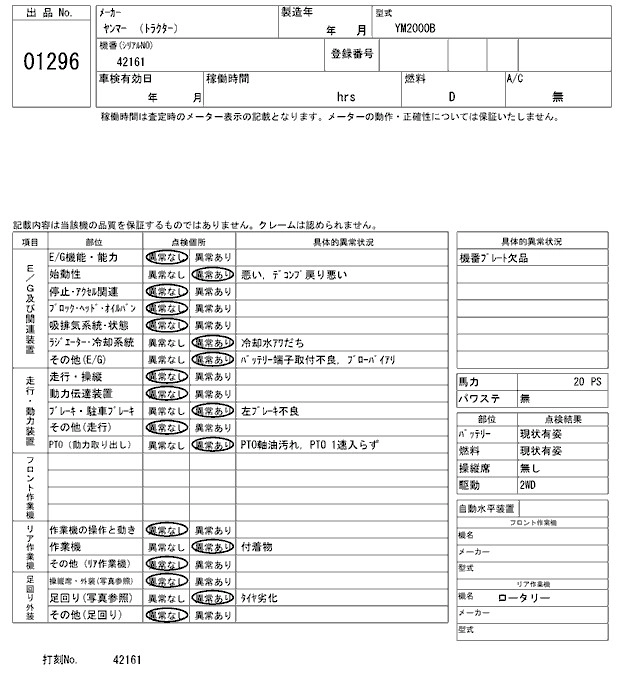 Статус выставлен на аукцион Лот 1296 Аукцион ARAI Kenki Дата аукциона 17.03.2026