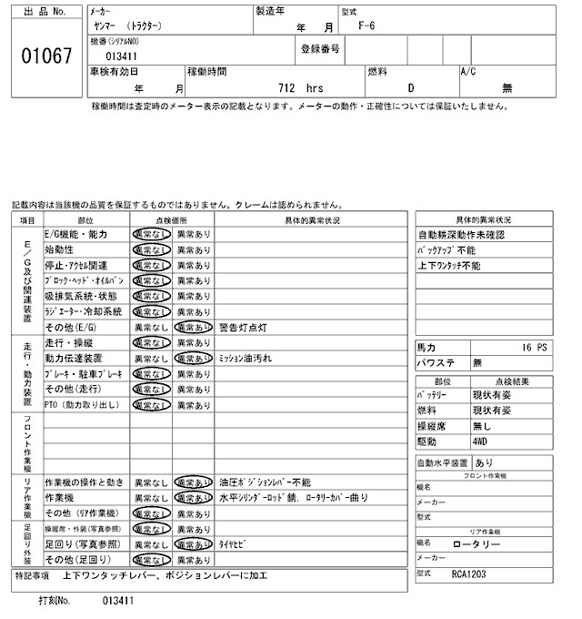 Статус выставлен на аукцион Лот 1067 Аукцион ARAI Kenki Дата аукциона 17.03.2026