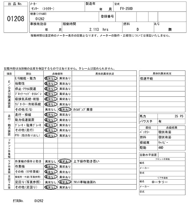 Статус выставлен на аукцион Лот 1208 Аукцион ARAI Kenki Дата аукциона 17.03.2026